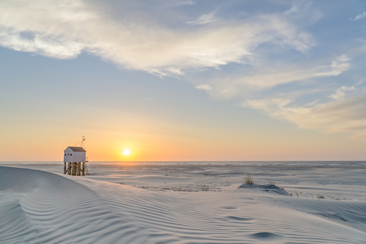 Een van m’n mooiste plaatjes in de zomer gemaakt op Terschelling. Een goed drie kwartier lopen dan zie je naast het drenkelingen huisje de zon onder gaan, een bijzondere plek!