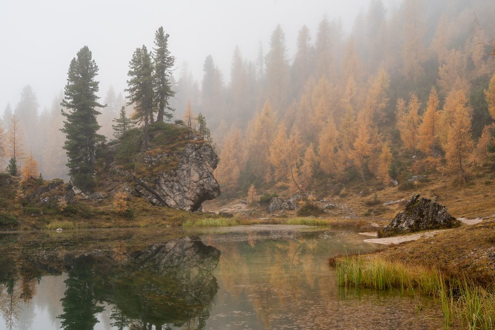 Wekker om vroeg in de morgen en we stonden om 05:50uur klaar voor de taxi/jeep die ons bracht naar Lago di Federa. Een rit om wakker van te worden. Het grote deel is geasfalteerd waarna de onverharde stukken kwamen, hobbelend achterin naar de hoogte van 2038M waar je in het donker aankwam, het leek even helder te worden. In het donker bonjour je jezelf langs het meertje en wacht je op hopelijk mooi licht en mist. Mist was er, het licht bleef uit. Het was windstil, reflecties gegarandeerd. Namatte het lichter werd, kwam later een wolkbreuk waar we toch wat licht mee hebben kunnen pakken. Uren vermaakt in deze omgeving, met de drone, en met alle lenzen die ik mee had. Na de terugreis boodschappen gedaan, gegeten (warm) en avonds geprobeerd om op de volgende locatie foto’s te maken, en weer trok alles dicht.