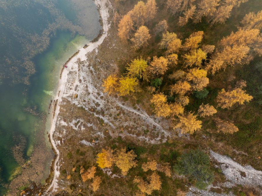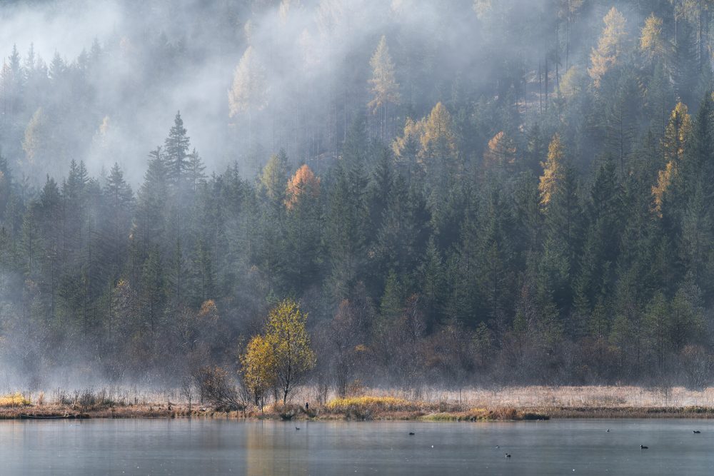 We gingen door naar: “Lago di Dobbiaco”, waar prachtige mist omstandigheden waren, mijn favoriete omstandigheden voor close-ups en drone foto’s.