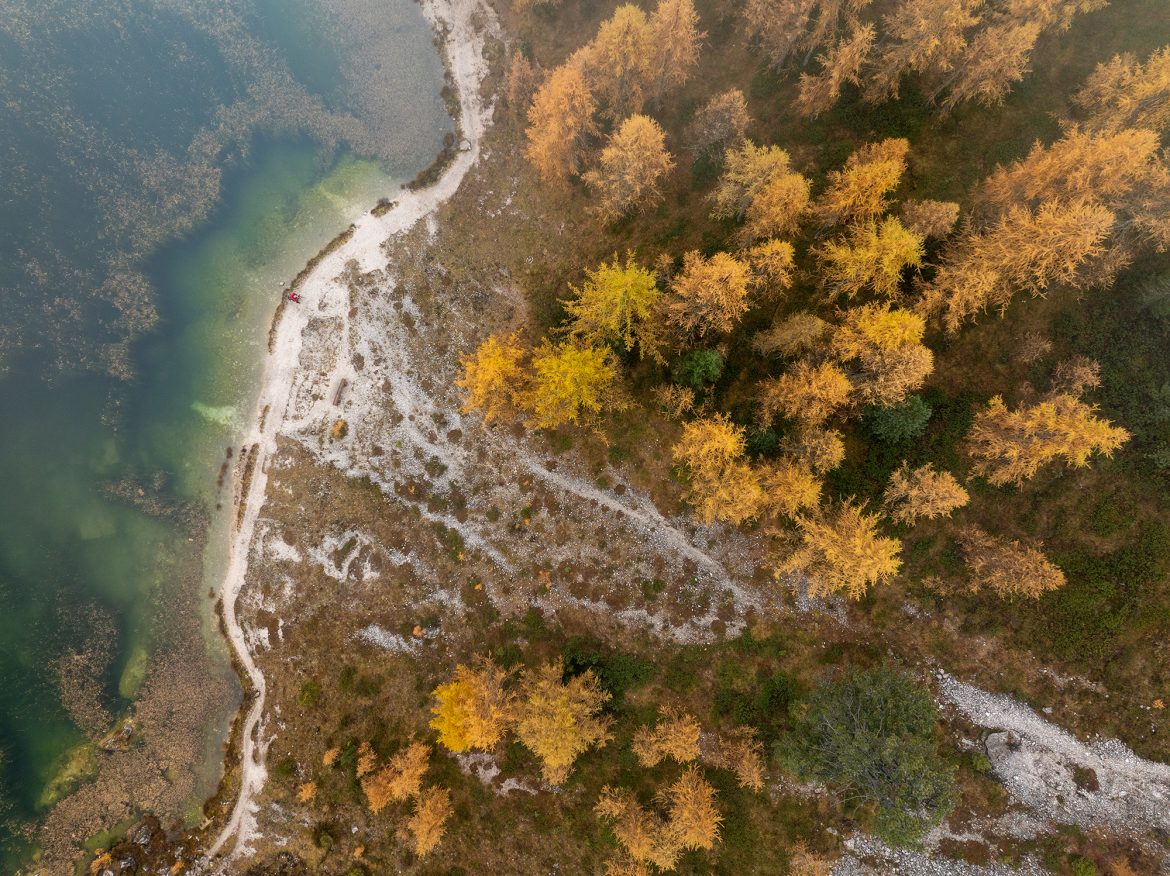 Vandaag was een reisdag: we verplaatsen naar een nieuwe locatie waar we de komende vier nachten zouden verblijven. Onderweg stopten we op diverse plekken — mooie lariksbomen in herfstkleur, beekjes, watervallen en natuurlijk bergen. De drone ging een aantal keer omhoog, zeker bij ‘Snake road”.