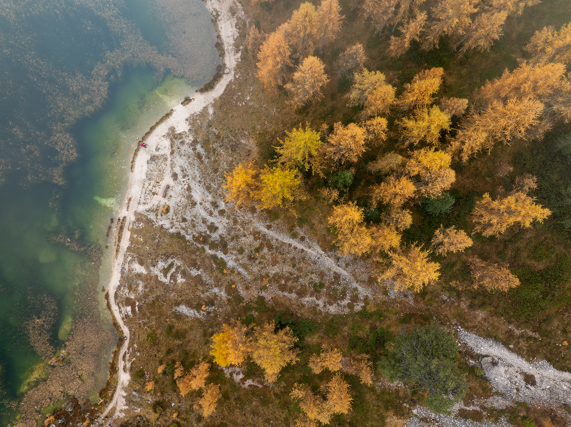 Wekker om vroeg in de morgen en we stonden om 05:50uur klaar voor de taxi/jeep die ons bracht naar Lago di Federa. Een rit om wakker van te worden. Het grote deel is geasfalteerd waarna de onverharde stukken kwamen, hobbelend achterin naar de hoogte van 2038M waar je in het donker aankwam, het leek even helder te worden. In het donker bonjour je jezelf langs het meertje en wacht je op hopelijk mooi licht en mist. Mist was er, het licht bleef uit. Het was windstil, reflecties gegarandeerd. Namatte het lichter werd, kwam later een wolkbreuk waar we toch wat licht mee hebben kunnen pakken. Uren vermaakt in deze omgeving, met de drone, en met alle lenzen die ik mee had. Na de terugreis boodschappen gedaan, gegeten (warm) en avonds geprobeerd om op de volgende locatie foto’s te maken, en weer trok alles dicht.